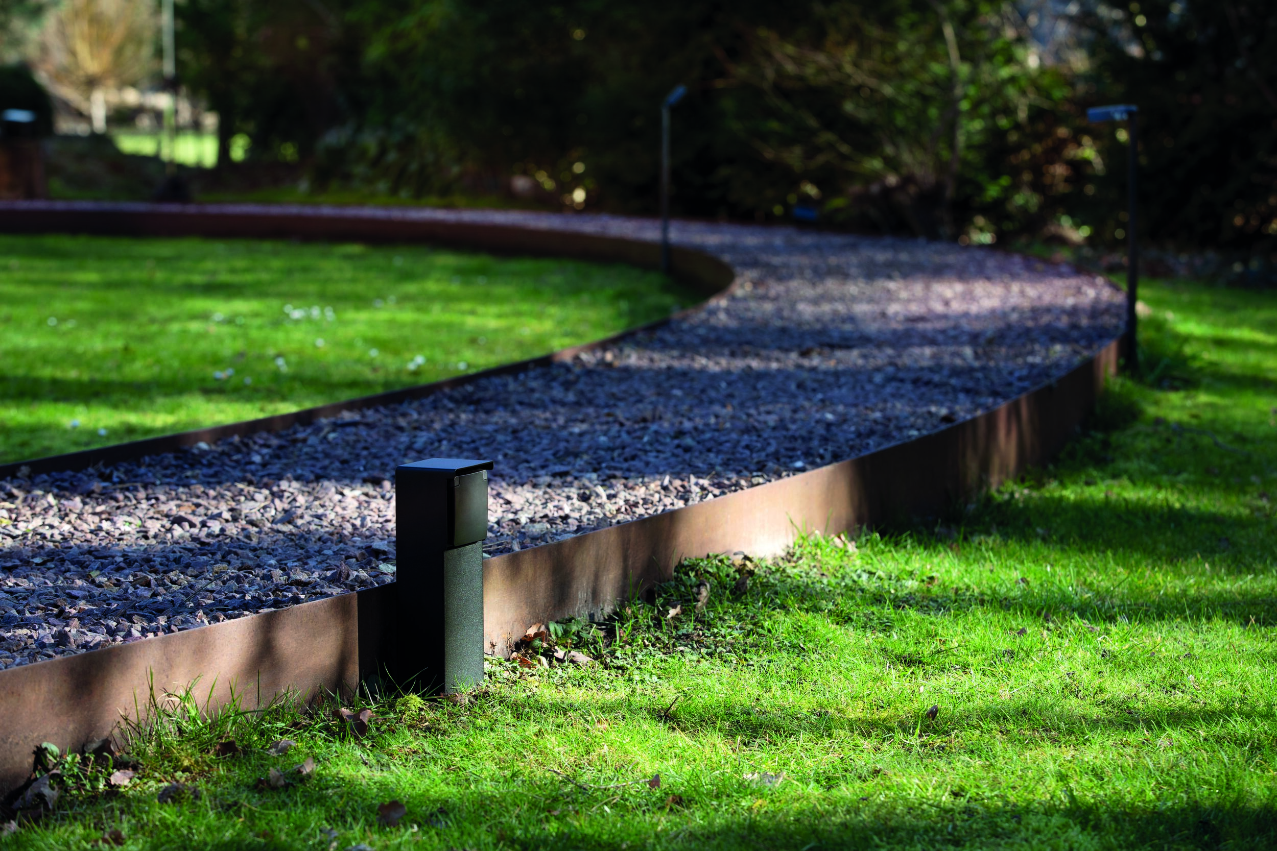 De tuinpaal is voorzien van een grondplaat of een grondpin om hem zowel op een hard oppervlak als in een zachte ondergrond te kunnen plaatsen.