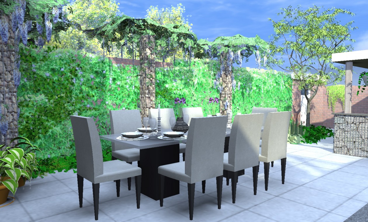De mogelijkheden zijn eindeloos. De FirmusPERGOLA-elementen zijn te vullen met stenen naar keuze. U kunt ze laten begroeien met klimplanten, bijvoorbeeld een prachtige blauwe regen, of u kunt natuurlijk ook kiezen voor beide opties.