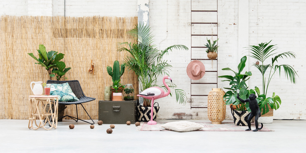 Een andere fijne interieurtrend die een plekje in de tuin heeft veroverd is de botanische trend. Nu was de tuin altijd al een geschikte plek voor planten, maar voor deze trend geldt: hoe meer groen, hoe beter! Bamboe, rotan en hout brengen jouw buitenruimte in junglesferen en ook een aantal aapjes of flamingo's dragen hun steentje bij. Laat ook vooral de natuur haar gang gaan.