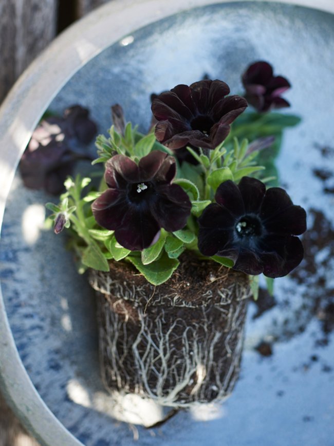 De plant bloeit uitbundig met steeds nieuwe kelken van mei tot de vorst. De 'juwelen van de zomer', zoals ze vroeger werden genoemd, kun je prima planten in de volle grond. Maar het beste pronkt de Petunia in hangmanden, bakken en potten. Dat geeft de bloemen de ruimte om als een waterval over de rand te hangen. En er valt nogal wat te showen: de plant is er met gestreepte en gestipte bloemen, met kleurverloop, een wit randje of een verfijnde tekening. En effen van hagelwit tot karmozijn, diepblauw paars en bijna zwart. Petunia heeft het allemaal in huis, in enkele en dubbele bloemen.