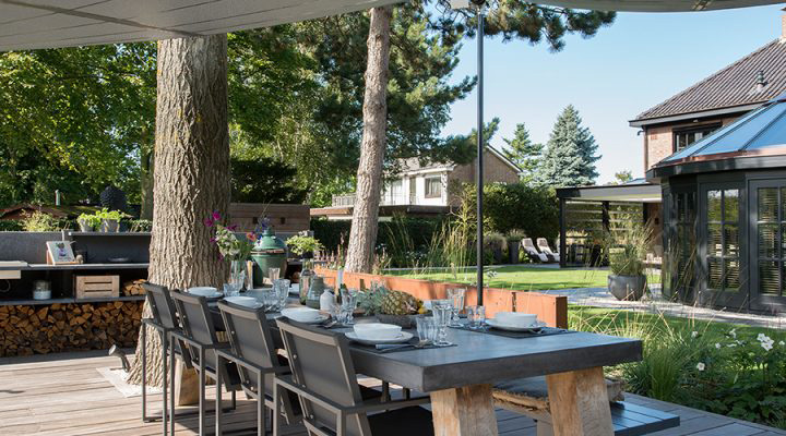 Dit uit zich in het gebruik van buitenlandse materialen, ontwerpen en planten in hun tuin, maar ook het plaatsen van buitenkeukens en zwembaden.