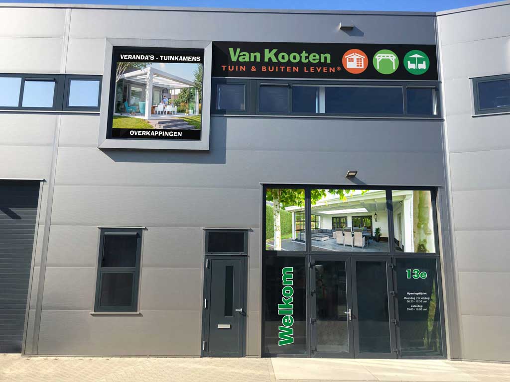 Van Kooten Tuin & Buiten Leven is opgericht in 2004 en sindsdien uitgegroeid tot dé expert op het gebied van tuin- en buitenverblijven. Met vestigingen in Numansdorp, Strijen, Hoofddorp, Velp, Veldhoven, Amersfoort en Wommelgem (BE) voorzien we klanten in heel Nederland en België in al hun tuinwensen. Met de opening van onze achtste showroom zijn we nog beter bereikbaar. Het vinden van het perfecte buitenverblijf was nog nooit zo eenvoudig. Onze showrooms zijn zes dagen per week geopend, ma. t/m vr. van 8.30-17.30 uur en za. van 9.00-16.00 uur.