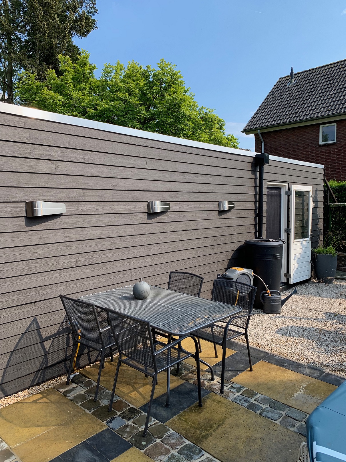 Rabat / potdeksel plank van hout composiet naast composiet schuttingen en composiet terrasplanken wordt composiet steeds meer toegepast in andere producten. Om aan deze vraag te voldoen ontwikkelden wij als eerste in Nederland een unieke mal waarmee het populaire composiet rabatdeel wordt geproduceerd. Met composiet rabatdelen maakt men (net als houten rabatdelen) : schuttingen, containerbehuizingen, tuinkasten, tuinschuurtjes, gevelbekleding, dierenverblijven.
