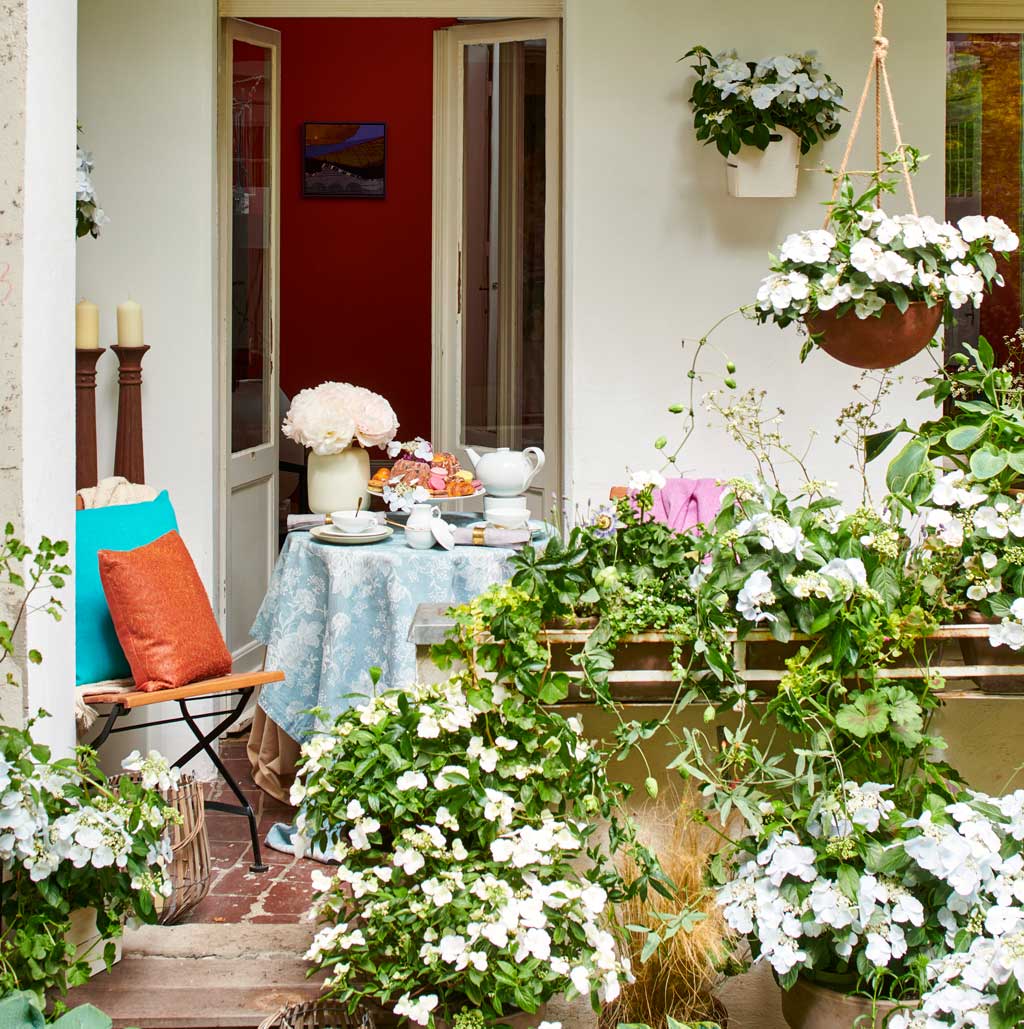 De Runaway Bride heeft een compacte groeiwijze en is, doordat ze zo’n 50 cm hoog wordt, ideaal voor toepassing in hoge potten of hangbakken. Het kleinere formaat leidt echter niet tot minder bloeiplezier. Door de enorme overdaad aan witte bloemen wordt zelfs een hoekje met grauw, grijs beton ineens gezellig en maak je van elk stadstuintje een heerlijk relaxplekje.