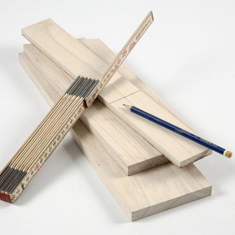 2 | Meet, teken en zaag de stukken hout volgens de instructies op de bouwtekening.