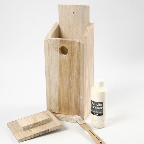 7 | Het vogelhuis is nu klaar om geverfd of gebeitst te worden. Gebruik altijd weerbestendige (acryl)verf.