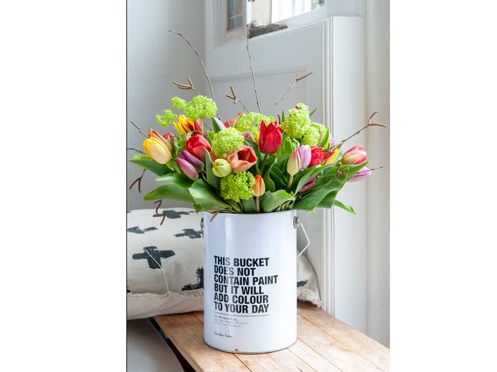 Een vaas vol tulpen zorgt voor een beetje leven in de brouwerij. Ze groeien nog vaak een klein stukje door en gaan lekker eigenwijs over de rand van de vaas hangen. Wil je ze zo lang mogelijk rechtop hebben staan? Zet ze dan na aanschaf een half uurtje in de vaas met het inpakpapier of -hoes er nog strak omheen. Dan hebben de stelen zich volgezogen met water, zijn ze steviger en kun je het papier verwijderen. Je kunt ook kiezen voor een hoge (glazen) vaas, die steun biedt aan de stelen.
