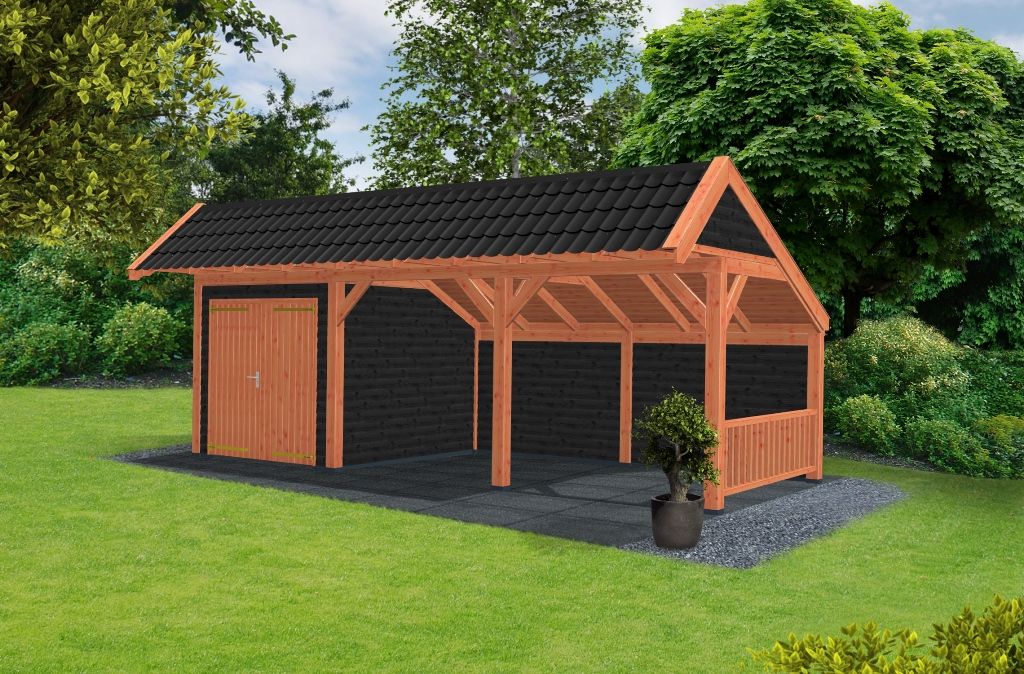 Kapschuur 'De Stee' is helemaal naar uw eigen wensen in te vullen met wanden. Het is zelfs mogelijk om een berging en een loungegedeelte onder één dak te creëren. De kapschuur is leverbaar in twee verschillende modellen, afhankelijk van uw wensen. De verschillen kunt u zien in de afbeeldingen. De kapschuur wordt geleverd als bouwpakket maar kan ook door onze ervaren monteurs gemonteerd worden.