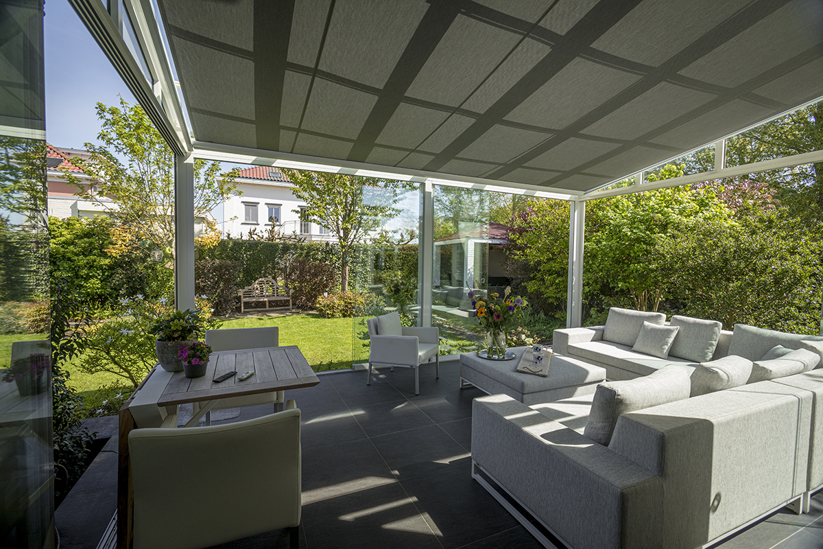Wordt het te warm? Zet de wanden open en laat de zonwering uit. Ook de zonwering gaat tegenwoordig elektrisch en met dezelfde afstandbediening. Kies de zonwering boven of onder het glas. Beide geen probleem, want bij Ittalum is alles maatwerk.