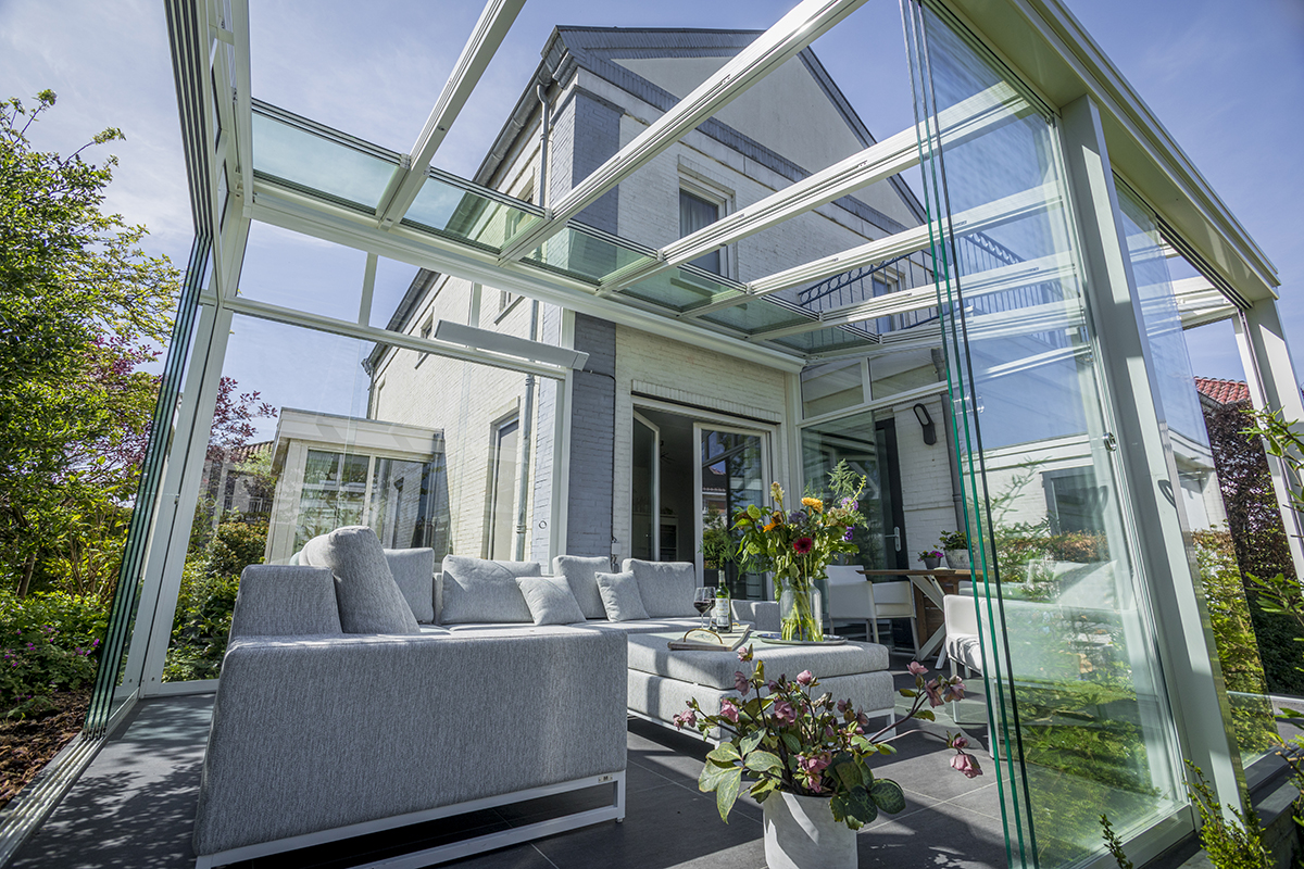 Wilt u van de zon genieten en het is warm, dan zet u het glazen dak gemakkelijk open met een afstandbediening of via een app op uw telefoon. Een beetje wind? Laat dan de schuifwanden dicht. Het wordt er heerlijk warm, net als aan zee bij een strandtent achter het glas.