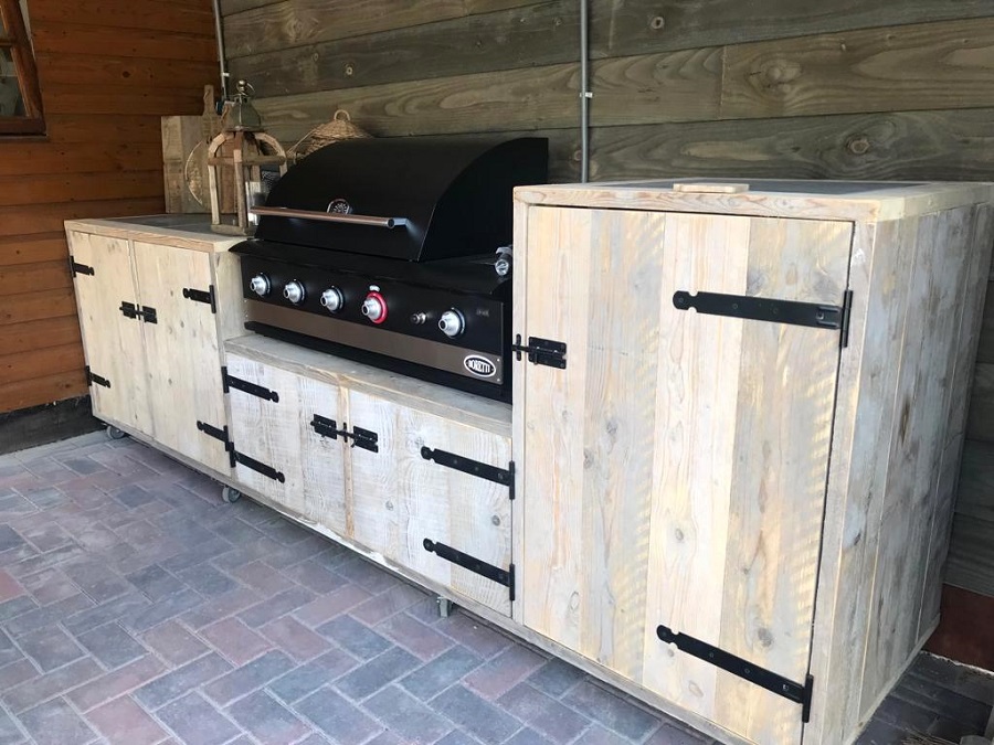 Robuuste buitenkeuken van steigerhout, maatwerk mogelijk!