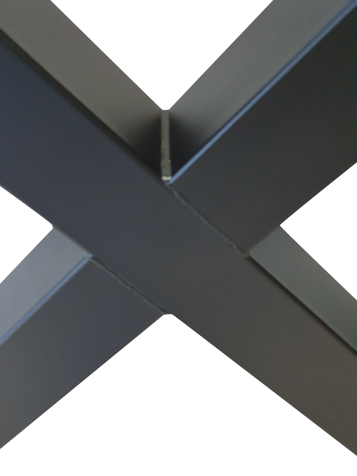 Strakke blokpoot picknicktafel van staal en composiet. Poot frame is gemaakt koker 10 x 10 cm. Het staal wordt altijd eerst verzinkt zodat het niet meer roest. Desgewenst kan de tafel gecoat worden in Ral kleur. De planken zijn van massief houtcomposiet 17 mm. Verkrijgbaar in 4 kleuren.