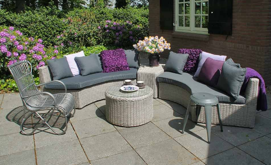 De Chloe loungeset van Fonteyn is prachtig halfrond. Deze strakke loungeset sluit mooi aan bij een strakke tuin of een rond terras. Geniet heerlijk ontspannen in uw tuin van het prachtige zomerweer!