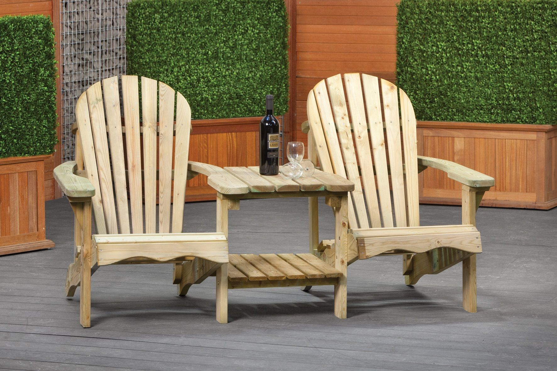 Een loveseat in de tuin is een ideaal om gezellig met z'n tweeën te genieten van de tuin en het lekkere weer. De loveseat is oorspronkelijk een brede anderhalf persoons stoel of fauteuil, maar tegenwoordig zie je vaak ook een opgedeelde tweezitter waar je heerlijk samen met je geliefde in kan genieten van een fijne zomeravond. Door het tafeltje dat tussen de twee stoelen is bevestigd kunt u een fles wijn en wat lekkere hapjes neerzetten: Het borrelen kan beginnen.