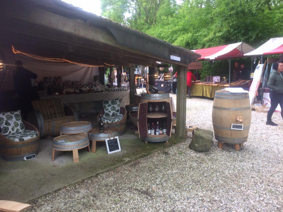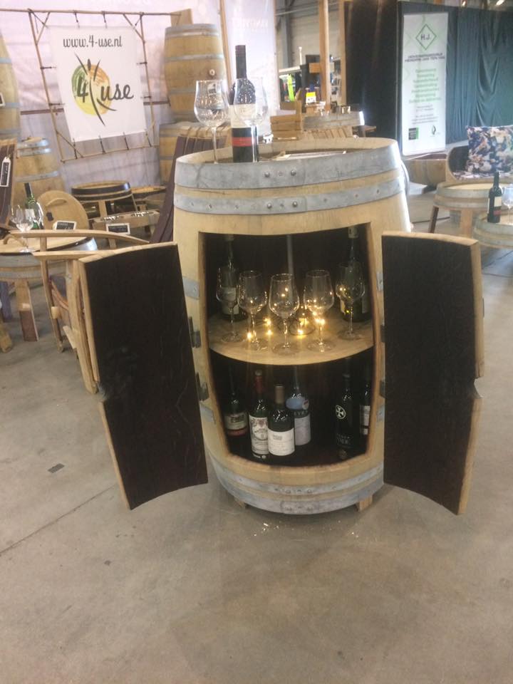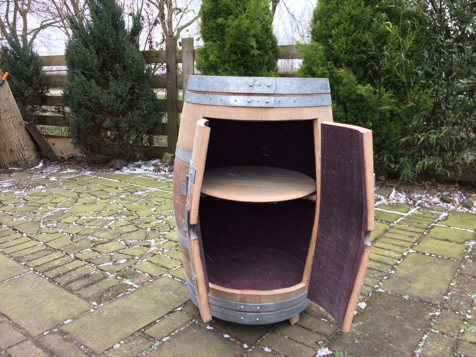 Mini bar gemaakt van een gebruikt eikenhout wijnvat. Mogelijk met vast plateau of draaiplateau