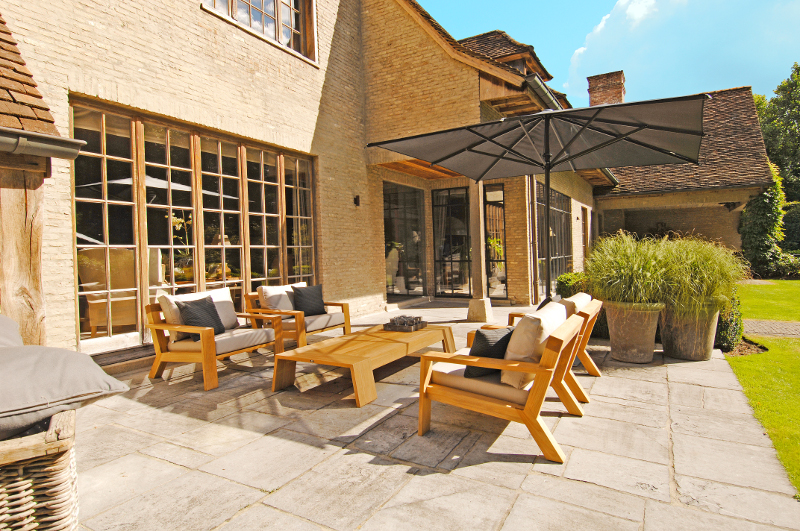 De fraaie houtsoort beleeft momenteel een ware comeback. Teakhout heeft immers niet alleen een warme uitstraling, maar is ook bestand tegen weer en wind. Dikke kussens (all weather) in de kleuren caillou cocoa en sooty, geven het luxe gevoel van heerlijk achterover ploffen in de Viking lounge chair van Bouwmeester van Rens voor Borek.