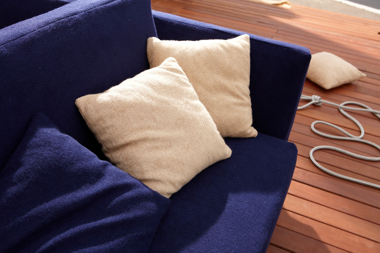 De zon is extra sterk op het water. Kunstleren kussens kunnen daar slecht tegen, waardoor veel vaarliefhebbers een katoenen sloop gebruiken als bescherming tegen de warmte. In tegenstelling tot stoffen op basis van katoen – die maar moeilijk de impact van uv-stralen en de wasmachine weerstaan – garandeert de nieuwe badstof Sunbrella® Terry kleurvastheid en uv-weerstand. Dankzij het in de massa geverfde acryl, zijn de stoffen goed bestand tegen schimmel en de andere risico’s op zee (vooral zout).