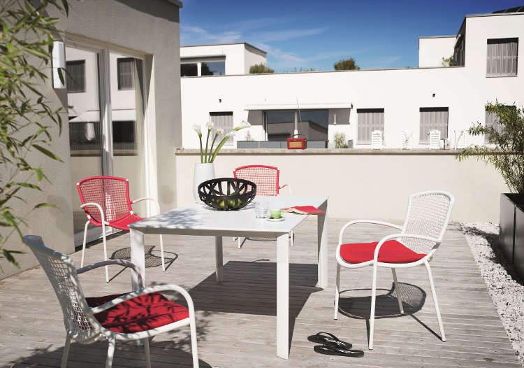 Het dakterras, balkon of de tuin zijn bedoeld om bij te komen van de drukte van alle dag. De Kettler Carnaby lijn maakt dit mogelijk in stijl en met maximaal comfort. De rode, zwarte en witte gevlochten design stoelen hebben een sterk aluminium frame en een comfortabele zitting.