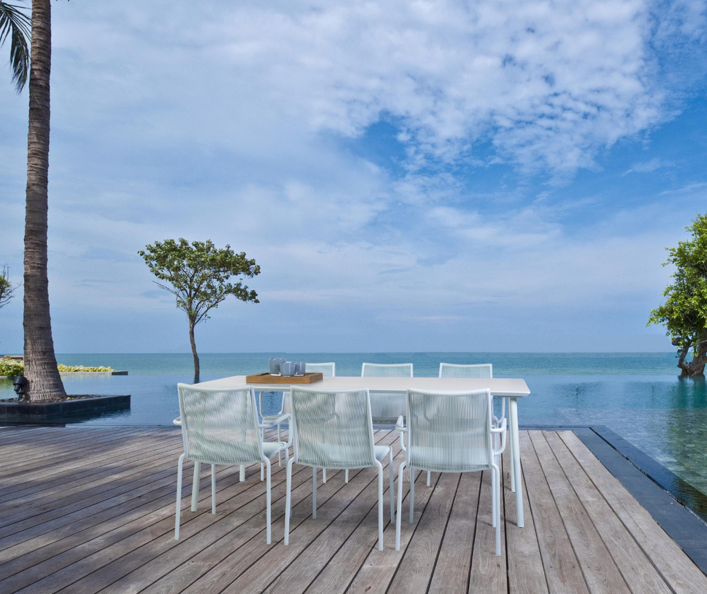 Collectie Valerie presenteert een stacking dining chair, met en zonder armleuningen, stacking lounge chair & sofa en hoge ‘bar chair’. Met een onmiskenbare retro look, maar met het comfort anno nu, zit deze hippe eyecatcher ook zonder kussens uitstekend. Valerie-stoelen laten zich makkelijk combineren met zowel aluminium als teakhouten tafels. Naast zonnige kleuren als ‘apricot’, ‘mint’ en ‘ice blue’ zijn de stoelen ook verkrijgbaar in zilver- en taupekleur.