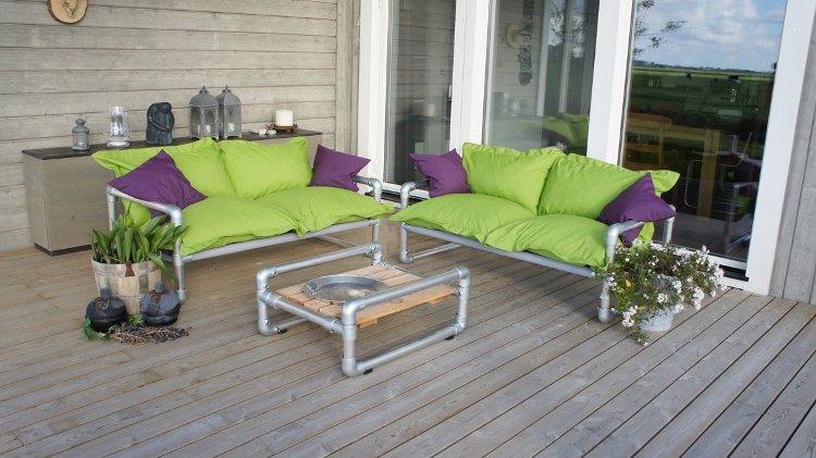 Waren er eerst steigerhouten meubels nu maakt ontwerper Pieter van Velzen van echte stevige aluminium steigerbuizen in combinatie met koppelstukken volstrekt unieke loungemeubelen. Ze zijn stoer, robuust en heel comfortabel met een luchtig en industrieel modern Dutch Design.