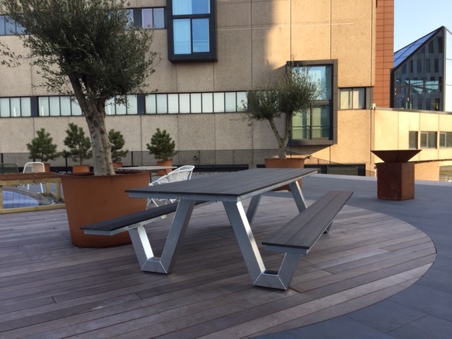 Prachtige duurzame picknicktafels, onderhoudsarm met een perfecte zithoogte. Deze tafel is gemaakt van staal, blokpoten van koker 10 x 10 cm. Tafelblad en zittingen zijn voorzien van composiet planken. Het frame is eerst verzinkt en daarna kan het gecoat worden in elke Ral kleur. Tuintafel kan in verschillende maten gemaakt worden, van 200 cm tot 400 cm. De tafel wordt altijd compleet gemonteerd geleverd op locatie. Prijzen voor deze picknickbanken zijn te vinden op onze website.