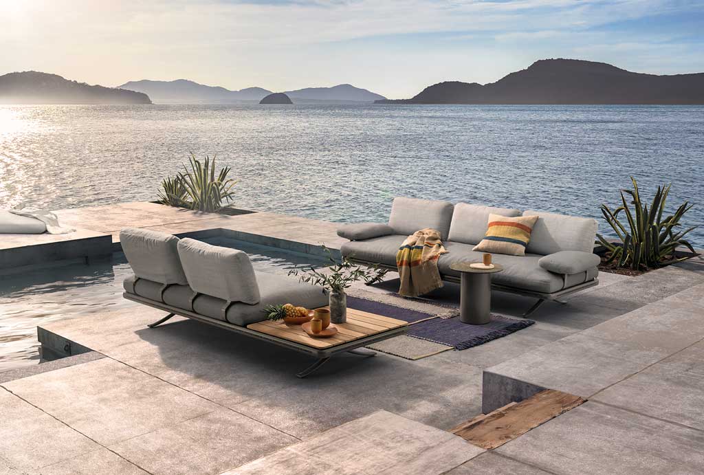 Naast de banken bevat het outdoor programma ook een salontafel, tafel, een fauteuil en een stoel.