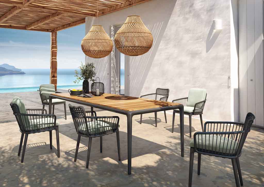 Naast de banken bevat het outdoor programma ook een salontafel, tafel, een fauteuil en een stoel.