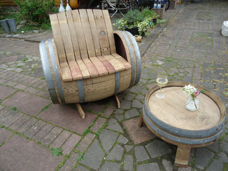 Een uniek bankje gemaakt van een gebruikt wijnvat. Een pronkstuk in iedere tijd