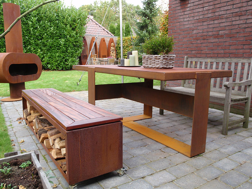 De Zeno Table is een op maat gemaakte design tafel en heeft een uit Cortenstaal gemaakt onderstel die in elk gewenste breedte en lengte geleverd kan worden.