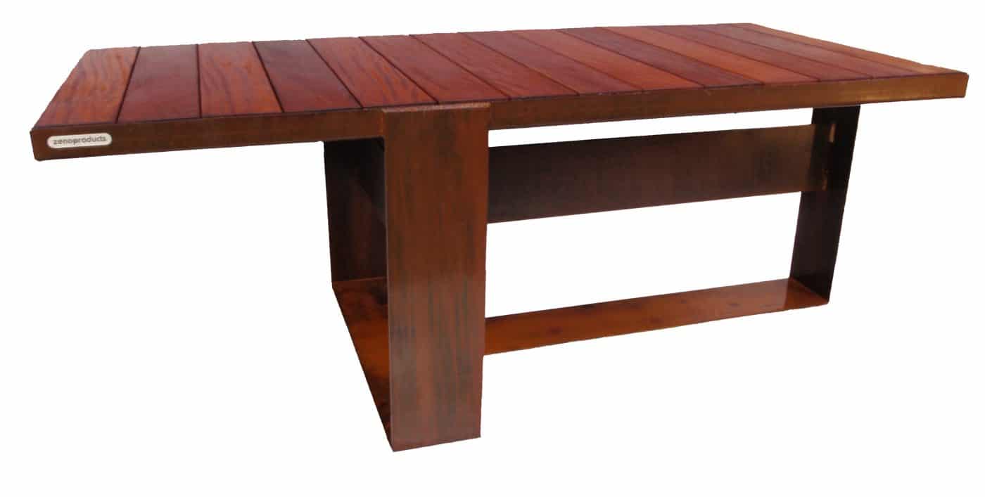 Als blad kan uit diverse soorten tropisch hardhout met FSC keurmerk gekozen worden of een hardstenen blad. De Zeno Table is op aanvraag ook leverbaar in RVS en gegalvaniseerd staal. Uitstekend om buiten te gebruiken maar als kantoortafel zou hij ook niet misstaan.