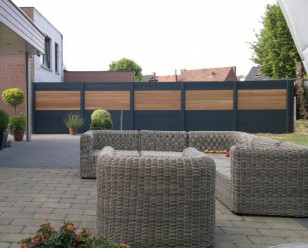Verkrijgbaar door heel Nederland.Van hoogwaardig aluminium schuttingen in combinatie met Bangkirai hout of WPC Houtcomposiet of glas en lamellen. Door de hoogwaardige materialen toe te passen word de levensduur van de schuttingen aanzienlijk verlengd. Dit heeft ook als voordeel dat deze schuttingen weinig onderhoud behoeven.