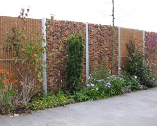 De tuinafscheidingen Kokohusk van Kokosystems BV geven tuin een natuurlijke, rustieke touch.