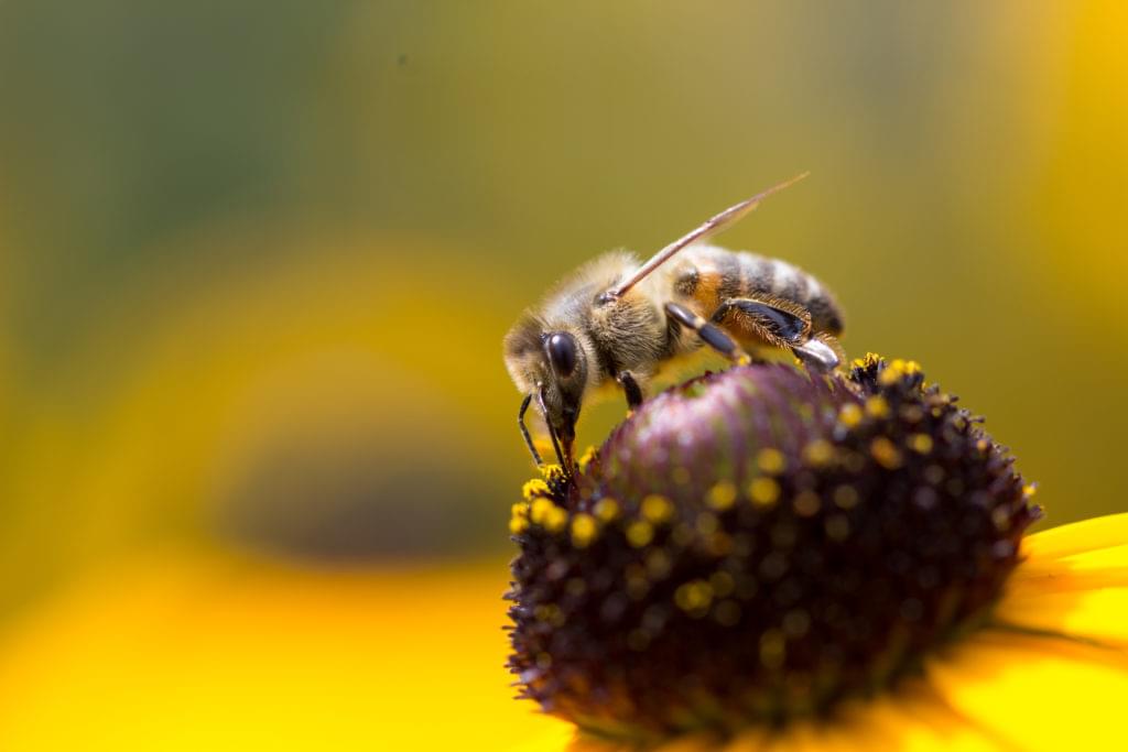 Honingbijen, wilde bijen, behangersbijen en metselbijen houden niet van vlees en eten alleen maar plantaardig. Echte vegetariërs dus!