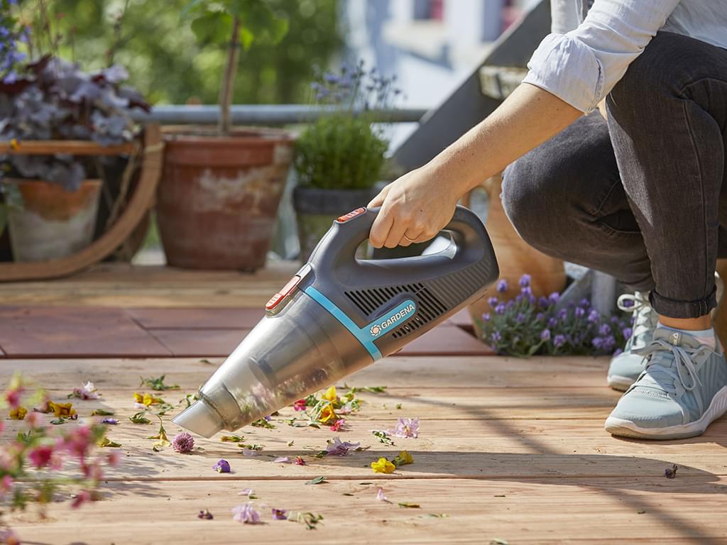 GARDENA introduceert de EasyClean, een draadloze tuinstofzuiger. Valt er bij het verplanten per ongeluk wat grond naast de pot of liggen er uitgebloeide bloemen op het terras? Met de nieuwe tuinstofzuiger is de vloer in een handomdraai weer schoon ook als het vuil nat of vochtig is. Ook kunstgras is uitstekend te reinigen met de EasyClean. Het apparaat kun je natuurlijk ook binnenshuis gebruiken.