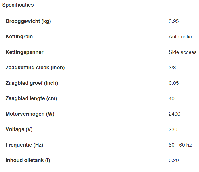 Motor 240 V / 2400 W - Zaagblad 40 cm - 3,95 cm
