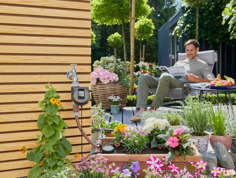 De nieuwe besproeiingscomputer van GARDENA is verkrijgbaar voor € 129,95 bij o.a. tuincentra.