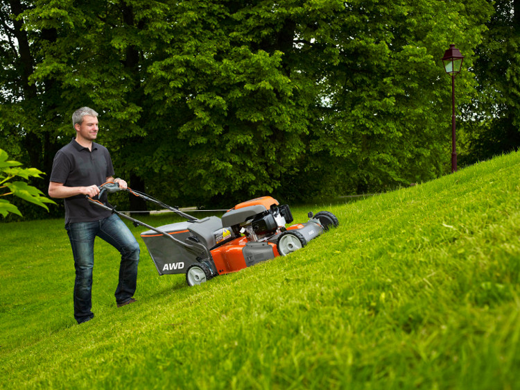 De nieuwe LC 56 AWD van Husqvarna met benzinemotor is een krachtige duwmaaier. Door het all-wheel-drivesysteem en het grove bandprofiel heb je optimaal grip tijdens het maaien ook op glooiende terreinen. De maaier blijft niet zomaar steken in een greppel en maait moeiteloos een heuvel op. Zelfs het zijwaarts maaien langs een hellend vlak is een fluitje van een cent en door de maaibreedte van 56 cm ben je bovendien extra snel klaar.