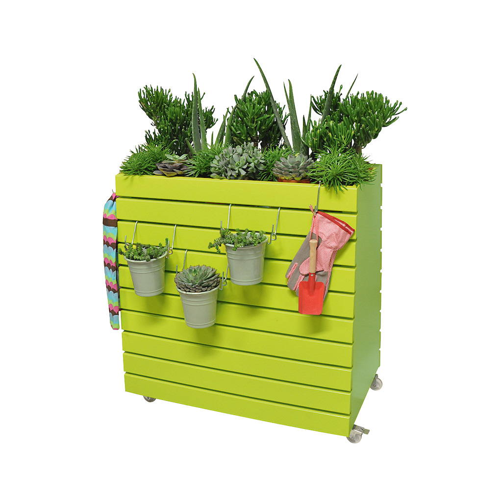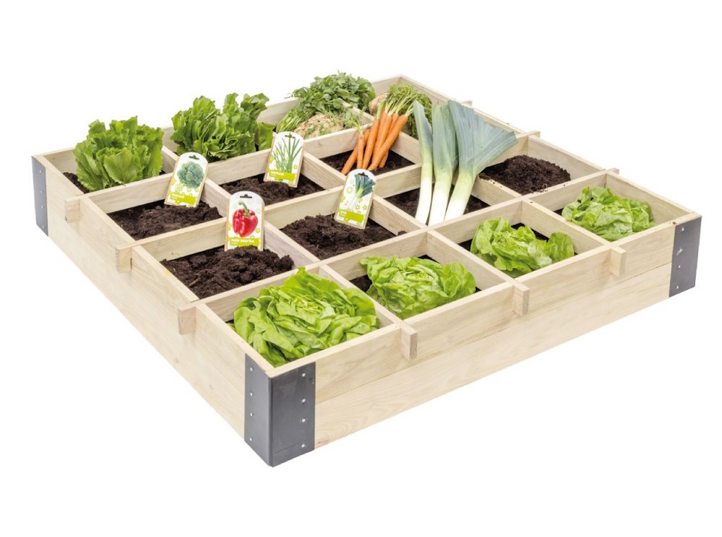 Een horizontale moestuin is doorgaans kleinvan formaat; zo ongeveer één tot anderhalve vierkante meter. De moestuin is voorzien van een houten kader en wordt verdeeld in kleine vakken waarin je verschillende groenten- en kruiden bij elkaar plant. Je kunt kiezen voor een moestuin die direct op de bestaande aarde wordt geplaatst of één in de vorm van een hoge bak. De laatste biedt vaak extra ruimte voor de spullen die je vaak gebruikt en maakt het comfortabeler om je plantjes te onderhouden.