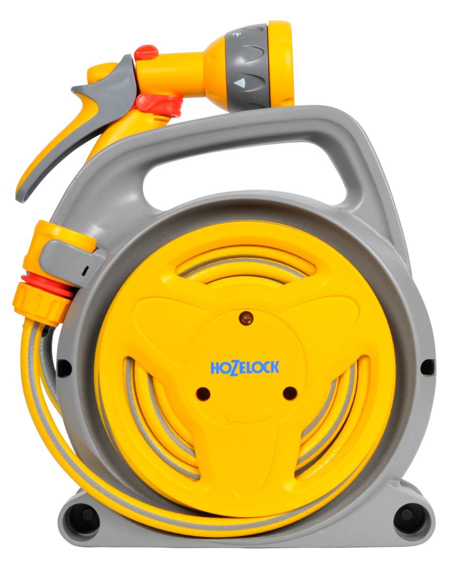 Deze compacte slanghaspel is speciaal ontworpen voor kleine tuinen, patio, terras, balkons of voortuin en weegt slechts 1,9 kg (ongeveer het gewicht van twee pakken suiker). Dit model wordt standaard uitgerust met 10 meter slang, alle benodigde koppelstukken en een multifunctionele broes. Met behulp van het bijgeleverde kraanstuk kan de slang direct op vrijwel iedere buitenkraan worden aangesloten. Om direct aan de slag te kunnen wordt dit model standaard geleverd inclusief een multifunctioneel spuitpistool met 5 sproeistanden om elke bewateringsklus te kunnen trotseren. Zo beschikt dit spuitpistool over een "snelvulstand" waarmee snel een emmer of bijvoorbeeld een kinderbadje gevuld kan worden, een harde straal om kleinere oppervlakken schoon te spuiten, een harde brede straal voor het reinigen van grotere oppervlakken zoals een auto, boot, caravan of tuintegels, een brede volle straal voor het bewateren van grotere oppervlakken zoals een gazon of border en tenslotte een broes voor het bewateren van bloemen en planten zonder ze te beschadigen en met minder kans op opspattend water.