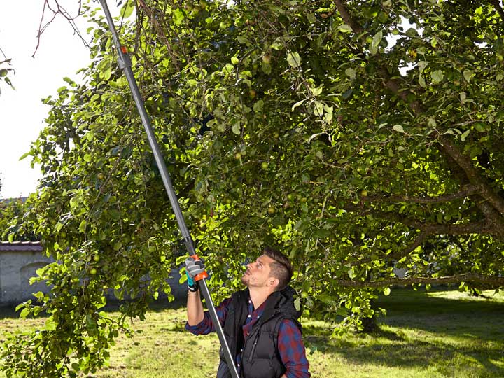 Met een goede snoeischaar knip je moeiteloos struiken en planten. Takken hoog in de boom of diep in een struik zijn echter lastig bereikbaar. De collectie Gardena-scharen met lange armen bieden uitkomst. Afhankelijk van het model kun je tot 6 meter hoogte snoeien. De scharen hebben een geïntegreerd metalen mechanisme dat zonder extra moeite 12x meer kracht geeft. Takken van zo’n 3 cm dikte worden met een simpele trekbeweging afgeknipt.