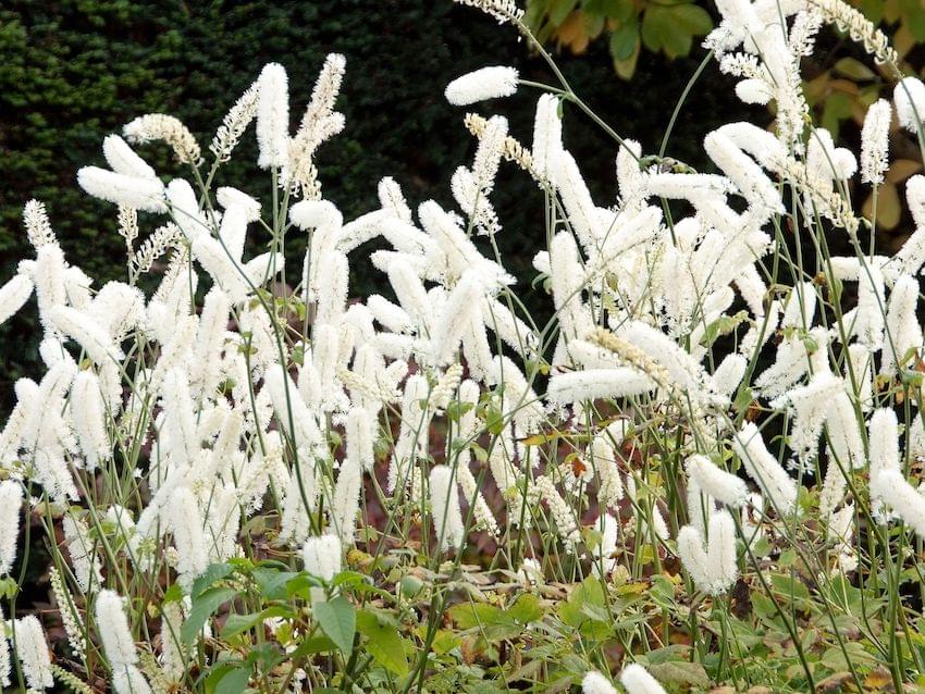 Deze plant komt echt superlaat in bloei en houdt niet zo van zon, hij staat liever op de achtergrond te stralen in de halfschaduw. De aren zijn wit roze en het blad is bruin. Supermooi plantje. Bloeitijd: september en oktober.