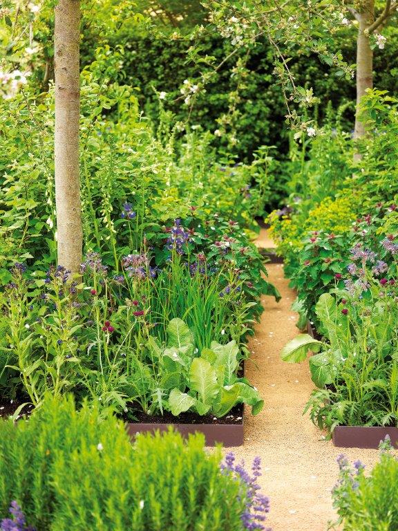 De diversiteit aan planten zorgt in deze tuin voor een uitstraling van natuurlijke rijkdom. We zien er eetbare en diervriendelijke planten in borders maar ook in pot. Hangende plantenbakken zijn terug van weggeweest. In de tuin zien we allerlei behuizingen voor kleine dieren.