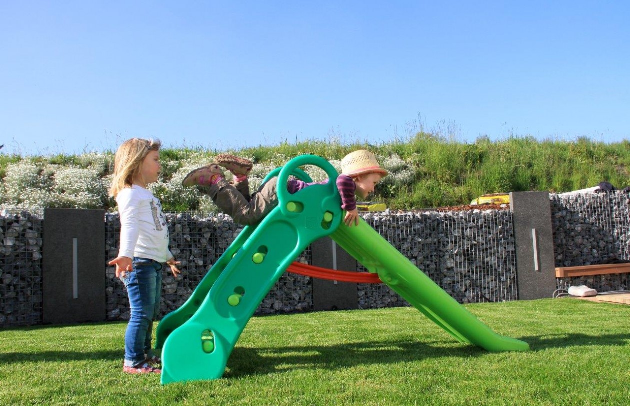 FirmusWAVE golvende schanskorven bestaan uit twee L-vormige elementen waarmee u een glooiende, sierlijke tuinafscheiding kunt vervaardigen.