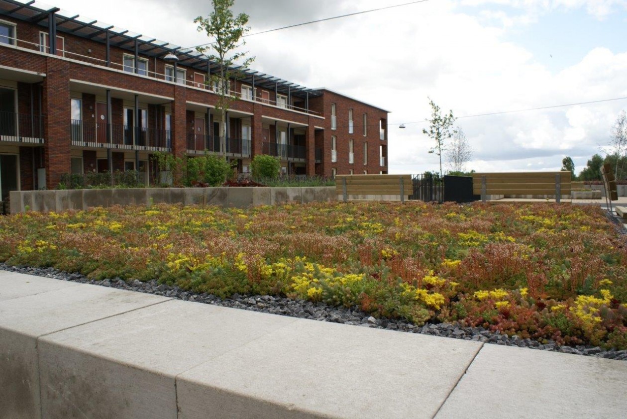 FirmusSEDUM kant en klare dakgroencassettes voor een direct groene uitstraling en een verhoogde isolerende werking in zomer en winter.