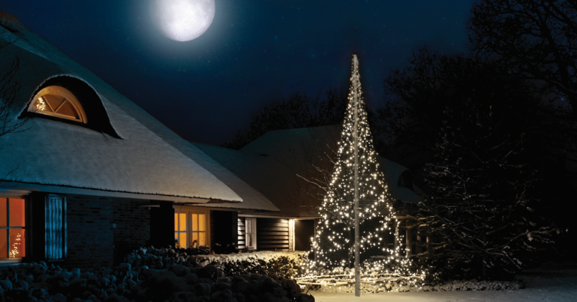 In korte tijd een grote kerstboom in uw tuin of voor uw pand? Dat kan nu met de kerstverlichting van Fairybell®.