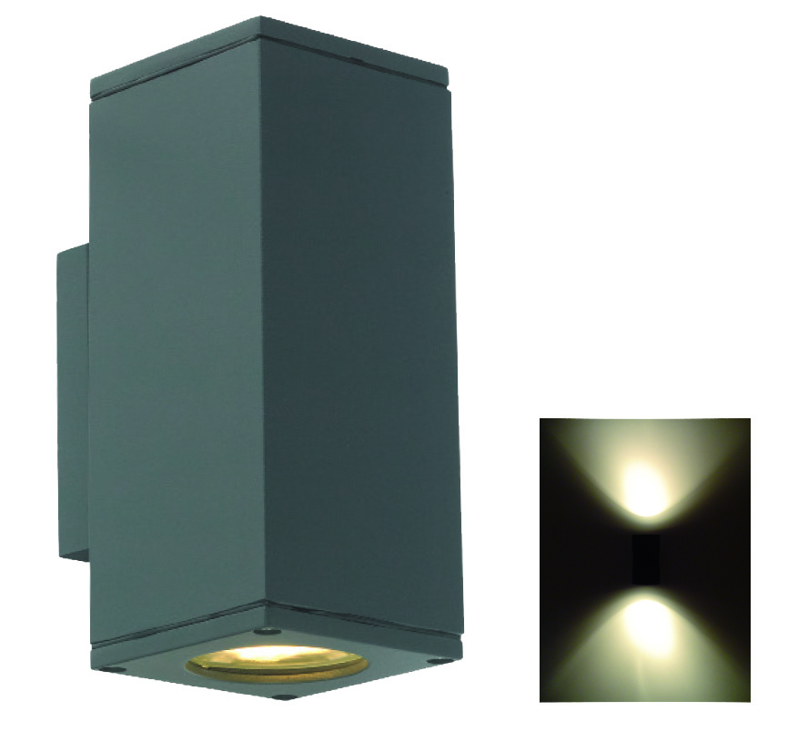 Modern strak vormgegeven aluminium gevelspot met zowel naar boven als naar onderen een fraai lichtschijnsel over de gevel. De lampvoet GU-10 is geschikt voor led, halogeen en spaarlamp. Ook leverbaar in 12volt laagspanning uitvoering.