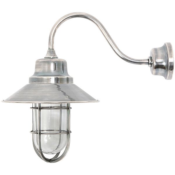 Diverse modellen wandlampen voor buiten met een stoere industriele uitstraling. De meeste modellen zijn verkrijgbaar in een zilver finish en een messing bruine uitvoering. Alle industriele buitenlampen zijn voorzien van een E27 fitting welke geschikt is voor vele spaarlampen en LED lampen. De industriele buitenlampen van TuinExtra heeft een beglazing van echt glas.