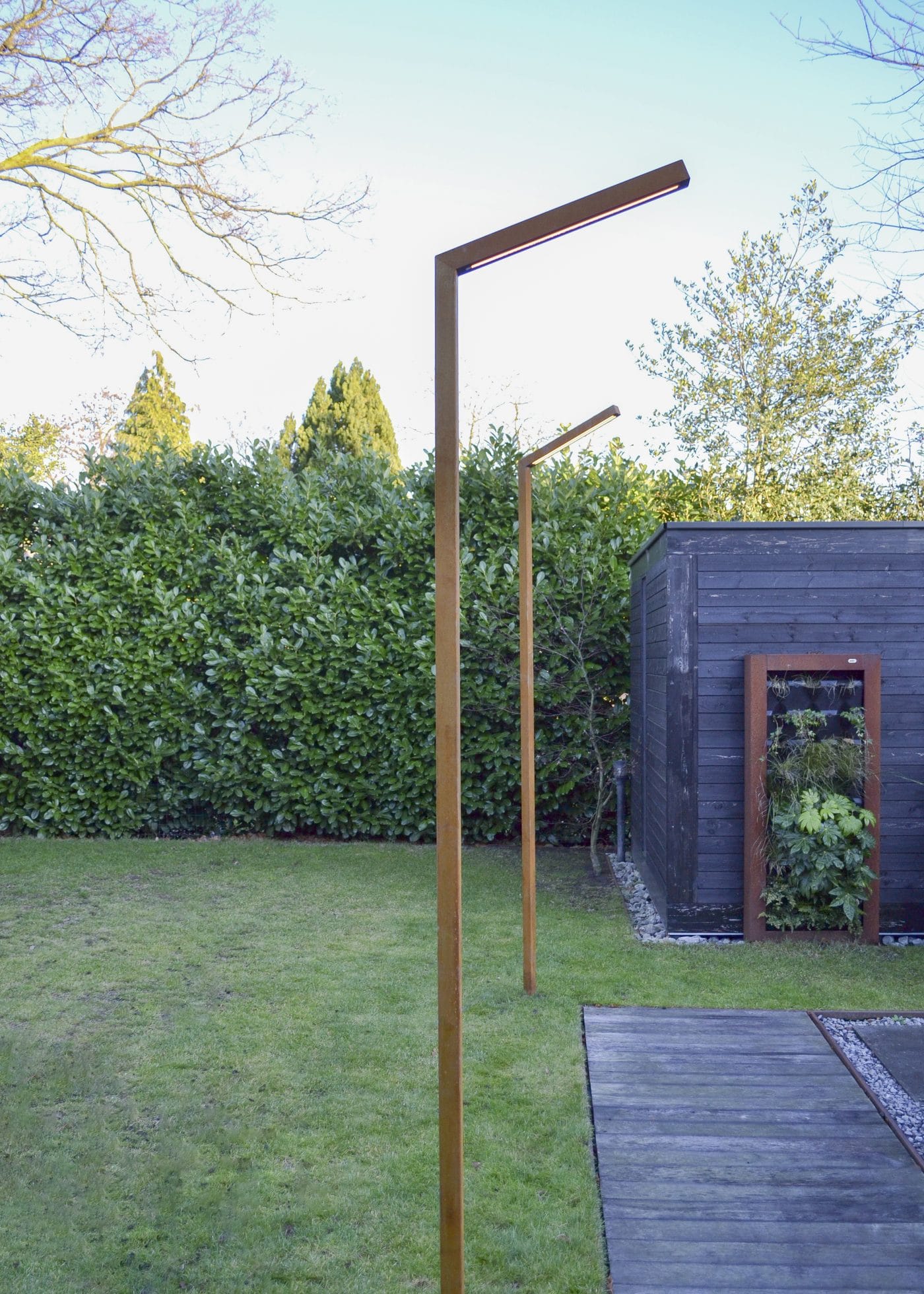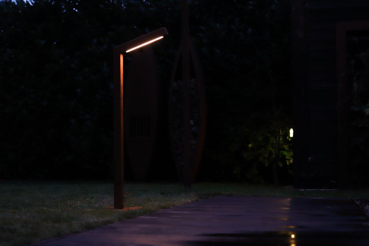 De Zeno Lamppost outdoor tuinverlichting is een combinatie van 2 duurzame elementen, een uit Cortenstaal vervaardigd armatuur en duurzame HPLED Lineair line
