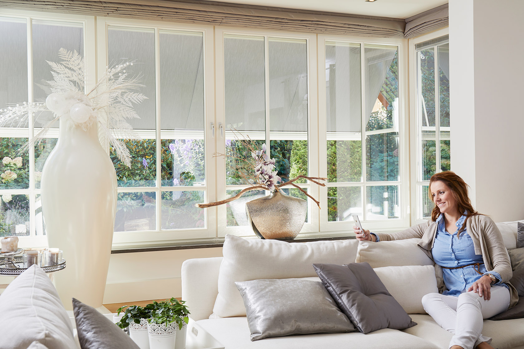 Screens op zonne-energie. Een harmonieus totaalbeeld … én de zon onder controle voor extra wooncomfort.