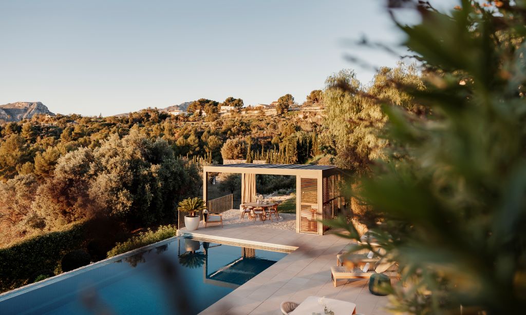 Met de zijgeleiders van amper 20 mm breed, zonder ook maar 1 zichtbare schroef en alles consequent afgewerkt in aluminium, valt de doekzonwering amper nog op.